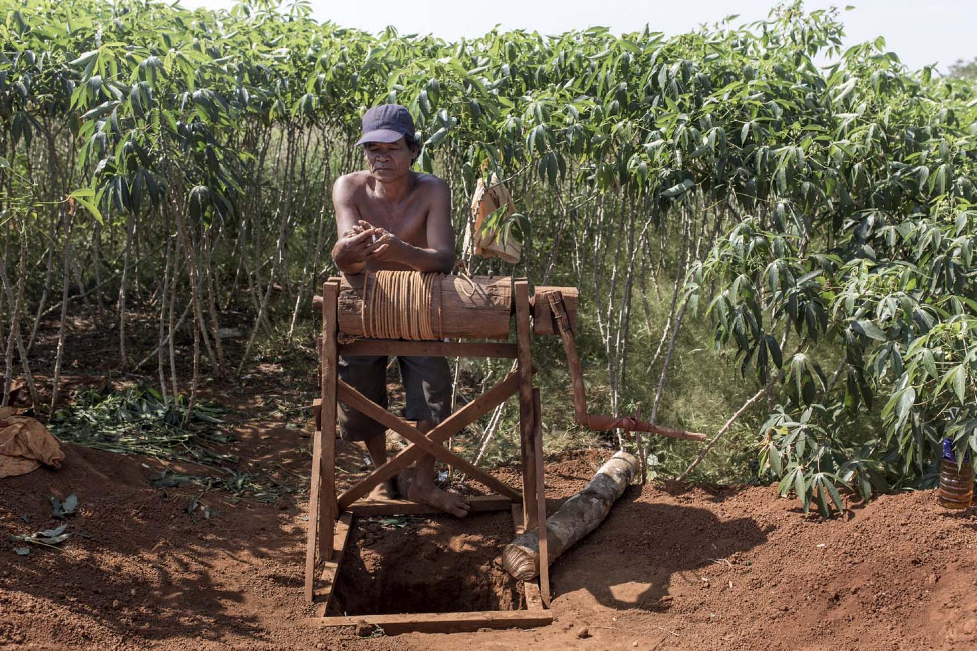 Ha-Chang clutches her 11-month-old daughter, Ha-Nita, as she sifts through the dark dry soil in search of zircon. “I left school in grade five to work in the rice fields to support my family,” the young mother says. “Now I work alongside my husband and make up to $100 a month for the gems we find. Mining pays more than farming. We can work for nearly the whole year, while rice farming is seasonal. But I worry for my daughter. I cannot afford to take her to the doctor or buy her medicine.”