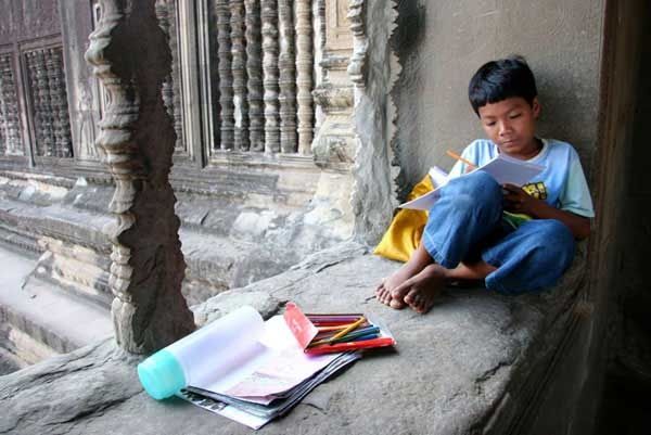 It was my third day in Siem Reap at Angkor Wat and I had become accustomed to the peddlers around the temple. I took this photo of one girl who didn’t notice I was around but she seemed so comfortable at her job and the place she worked.