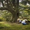 A pair of gardeners working in Kenrokuen Garden in Kanazawa. The Japanese take great pride in their gardens because, in their culture, it is considered a high art. The garden is considered one of the "Three Great Gardens of Japan," and was originally built in the 1600s as the outer garden for Kanazawa Castle.