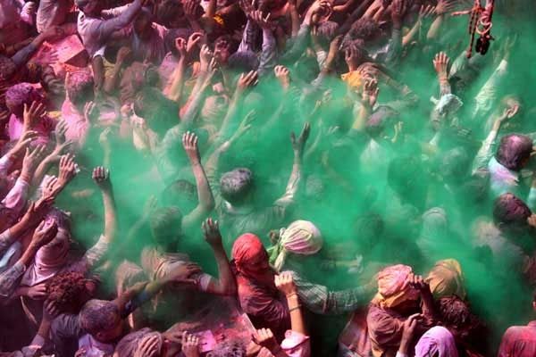 Revellers jostle for space inside Vrindavan’s Banke Bihari Temple in celebration; it is complete chaos inside. I originally entered on the main floor with the mob and being one of the only foreigners present, was assaulted by coloured powder and water. A kind man took my hand and led me up to a balcony where I had a great view of the celebration below.