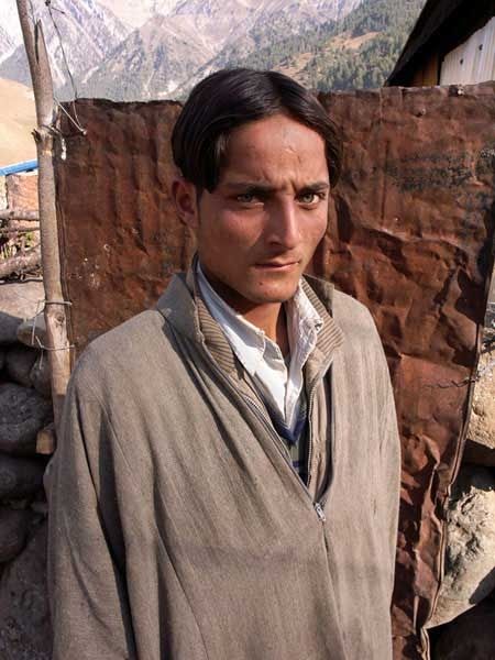 Photographed in front of his home, Ahmad Bhat, 18, is the eldest of four children. The conditions for people in his region are difficult. They live off the land, selling and trading potatoes and other vegetables and by guiding travellers on treks in the area. Tourism has fallen because of the ongoing conflict with Pakistan. And the winters bring snow, blocking the roads for months, forcing the villagers to move several kilometres south to another village for half of the year.
