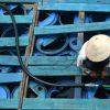 A man fills tanks on a boat in Halong Bay. I took the shot as I was on top of an adjacent boat, preparing to travel in North Vietnam.