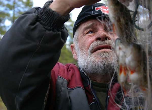 The Sámi, the indigenous people of northern Europe, inhabit the four countries of Sweden, Norway, Russia and Finland. In the short time I spent living with them, they opened their homes and hearts to me, and their openness and generosity is something I can only strive to emulate. This image portrays a retired Sámi man cutting down his daily fish catch from his nets in the lake by his house.
