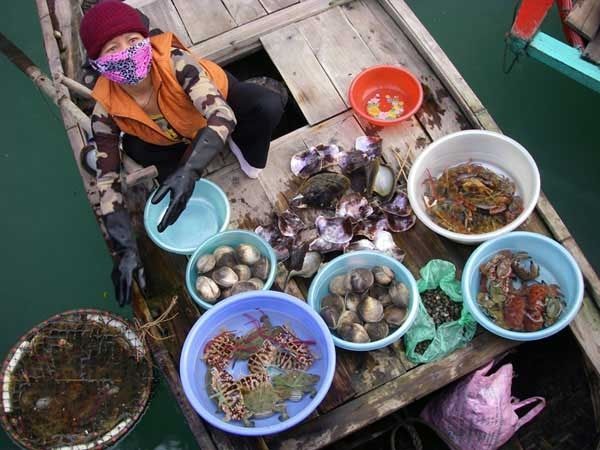 At Grotto Caves in Halong Bay, a local resident is anxiously trying to sell her goods to passing tourists. As most foreigners were on set cruises, she has a hard time with sales.