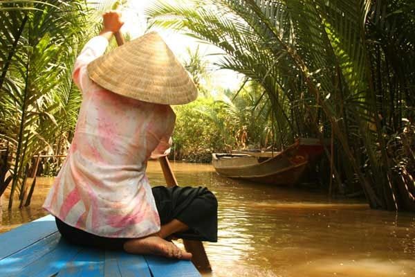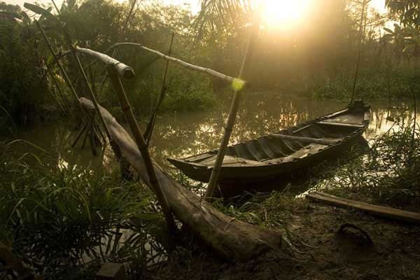 This image was taken during a boat ride in the thick, grassy waters in South Vietnam. While in the image it may look like a tranquil environment, it is actually an area that sees many tourists and boats moving about.