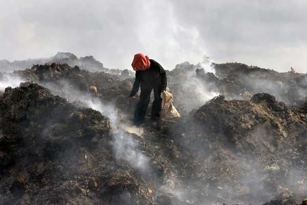 A Khmer woman earns under US$1 per day collecting metal, rubber and plastic from smoldering toxic debris at a garbage dump. More than 500 families work here, selling their harvest to local scrap yards. My friend Daniel Rothenburg has built schools here hoping that education might provide these workers’ children with a better future.