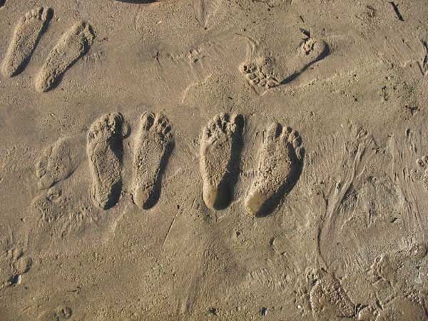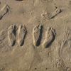 Taken in July 2006, during summer holidays in Almaty, Kazakhstan. My boyfriend and I decided to leave our prints on the shore and then took a picture of them. Later, it was interesting to see that the footprints look convex and inverted in the photo.