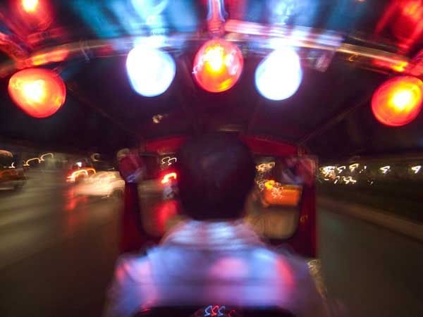 Riding in the back of a tuk-tuk in Bangkok is both the most exciting and frightening trips I have taken. While getting an exhilerating view of the city and a cool breeze in the sticky heat, I held my breath and braced myself while dodging through traffic at break-neck speeds!