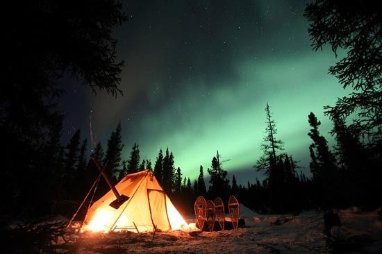This image of Scott McCormack was taken as he crosses Lake Minihek in Western Labrador. We travelled in a manner similar to the Innu and early European hunters and trappers in this region: pulling toboggans, wearing snowshoes and wool clothing, sleeping in a cotton tent with a wood stove. Scott is using this experience to write his Master’s thesis in environmental studies at York University.
