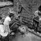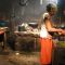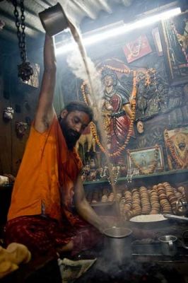 A man prepares traditional tea (chai) at a market stall near the ghats in Calcutta.