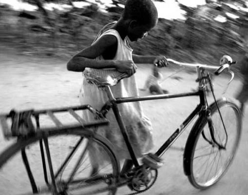 A young woman rides a bike on a farm near Rakai, Uganda. Rakai was one of the early HIV epicentres which decimated the adult population. As a result, the region has a large population of orphans. I spent three days with a family in the Rakai district of Uganda to document their daily lives.