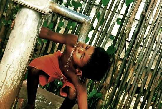 This photo was taken in March of 2009, on the inauguration of the first fresh water well for this community. One year ago, the 100 families here had no access to clean drinking water. This little boy summed up the joy of receiving this gift of fresh water by being the first to safely quench his thirst. This fundamental right was brought to this community through the help of the Pure Art Foundation.