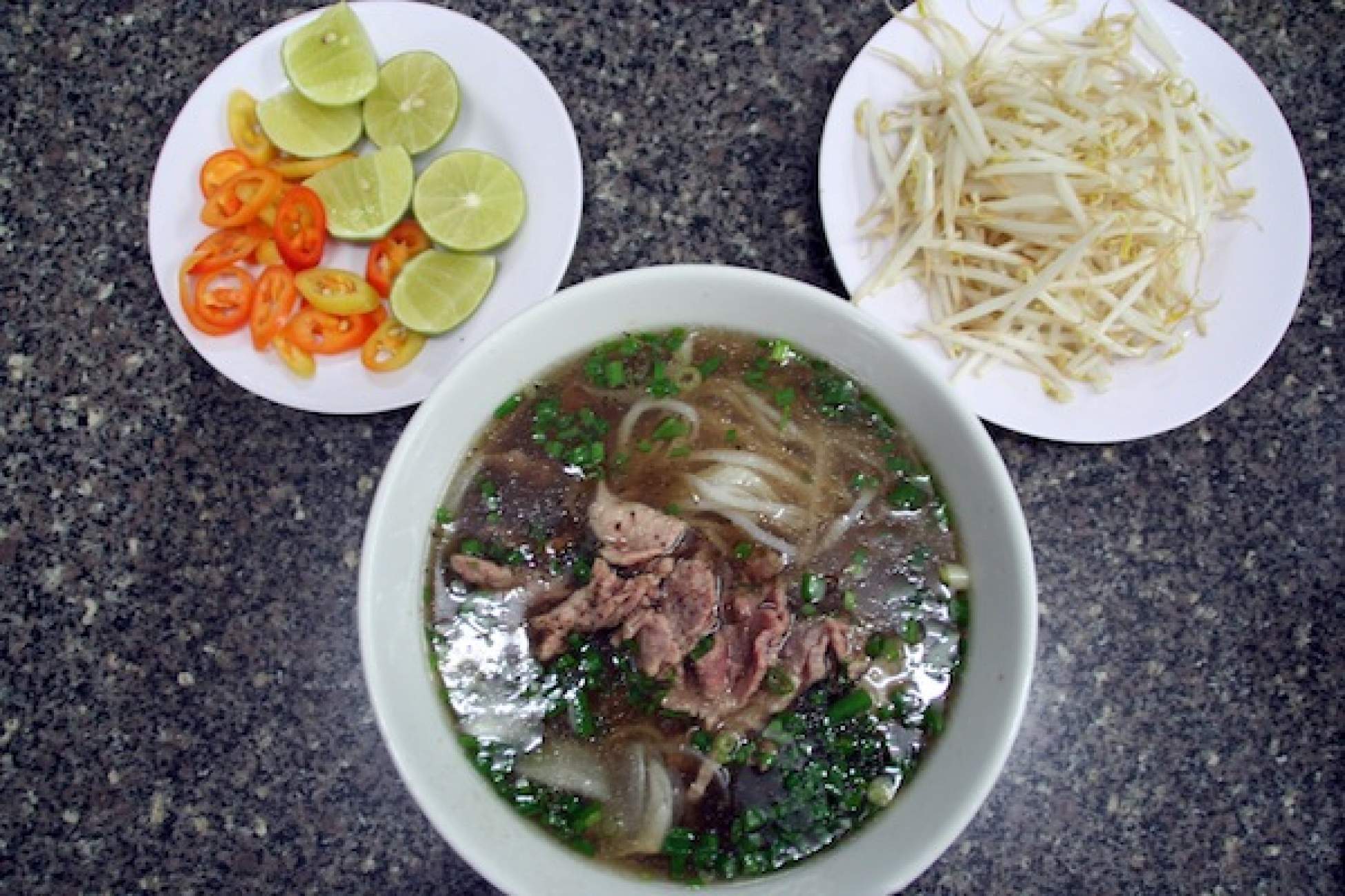 Since there is no better way to follow a water puppet show than with a big bowl of pho (Vietnamese noodle soup), especially since when you’ve worked up quite an appetite after chasing helicopters, it was off to the best noodle place in HCMC, according to my hotel’s reception at least.