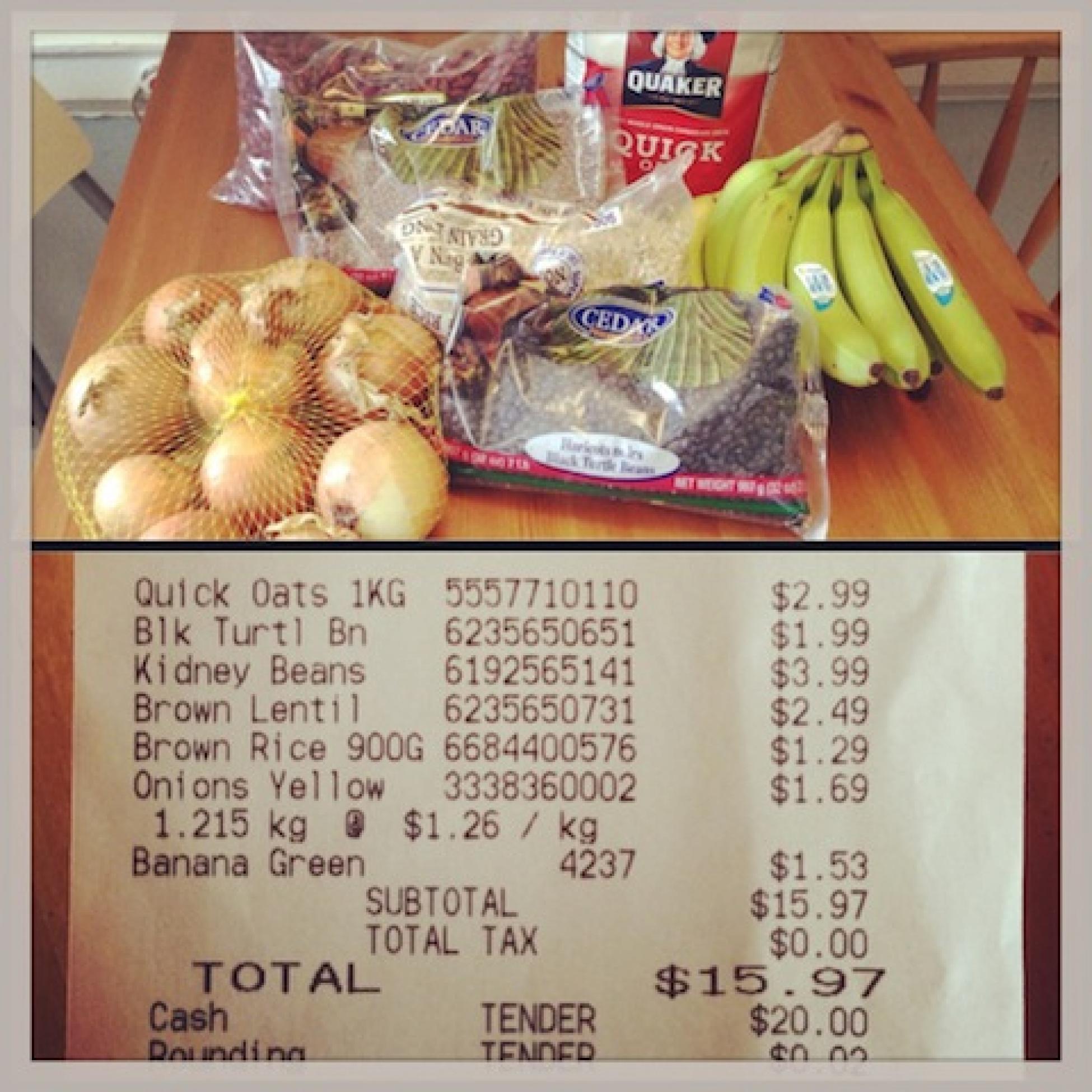 Participation I can do. So on Monday morning, my roommate Mike and I woke up early to stock up at the grocery store. Mike was a purist when it came to the challenge.“People living in poverty in Canada don’t have access to cars to drive to Bulk Barn. If we’re going to do this, I really want to do this,” he argued.
